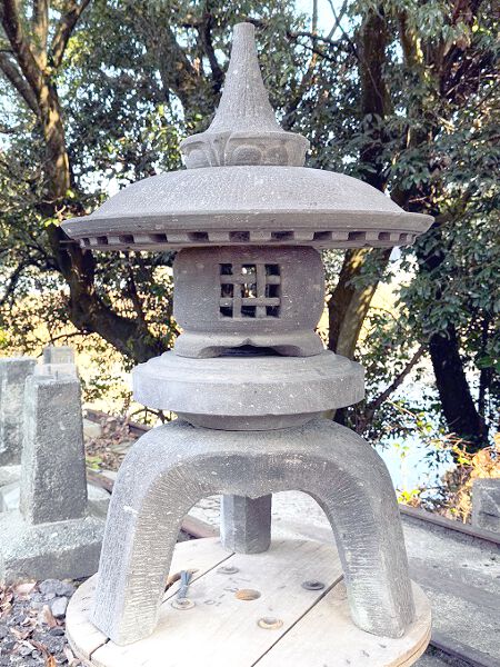 Bei älteren Steinlaternen können altersbedingt leichte Schadstellen und materialtypische Ausblühungen vorhanden sein, wodurch diese Steinlaterne ihr einmaliges Aussehen erhält.