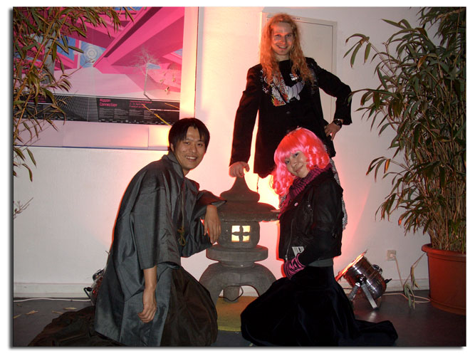 | Bei dem japanischen Filmfestival -NIPPON CONNECTION- 2008 und 2009 in Frankfurt am Main, waren auch einige meiner Steinlaternen als Dekoration ausgestellt. Nach Angaben des Veranstalters, ist -NIPPON CONNECTION- das größte Festival für japanisches Kino weltweit und existiert allein durch den großen ehrenamtlichen Einsatz des Festivalteams und vieler engagierter Helfer. Herr Ichiro Kataoka, hier auf dem mittleren Foto mit meiner Frau und mich zusehen, war einer von vielen Gästen aus Japan. Er ist in Japan als Benshi (Filmerzähler) bekannt. Weitere Infos zum japanischen Filmfestival:www.NipponConnection.de |