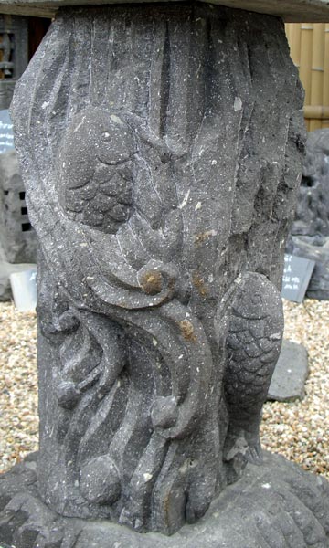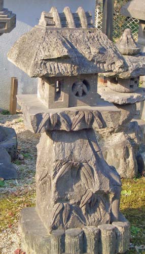 Rückseite ein dreieckiges Fenster als Öffnung für ein Licht. Die Oberflächen der Laterne sind einem Steinbeil