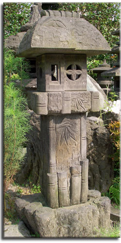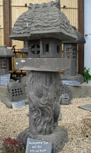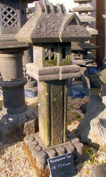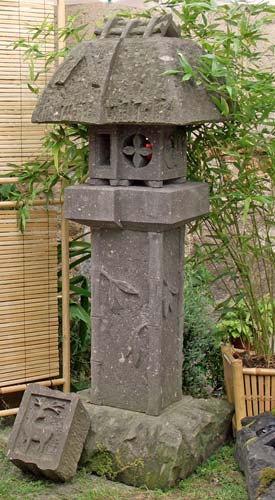 Der Schirm dieser Laterne hat die Form eines traditionellen japanischen Reetdaches.