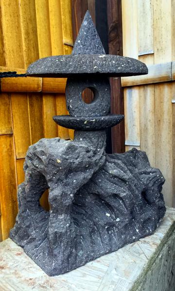 Das Vorbild dieser rustikalen Steinlaterne ist die japanische Kiefer, die oft als typischer Gartenbonsai anzutreffen ist. Kiefern haben in Japan einen hohen symbolischen Wert und werden für ihre Bedeutung und Schönheit sehr bewundert.